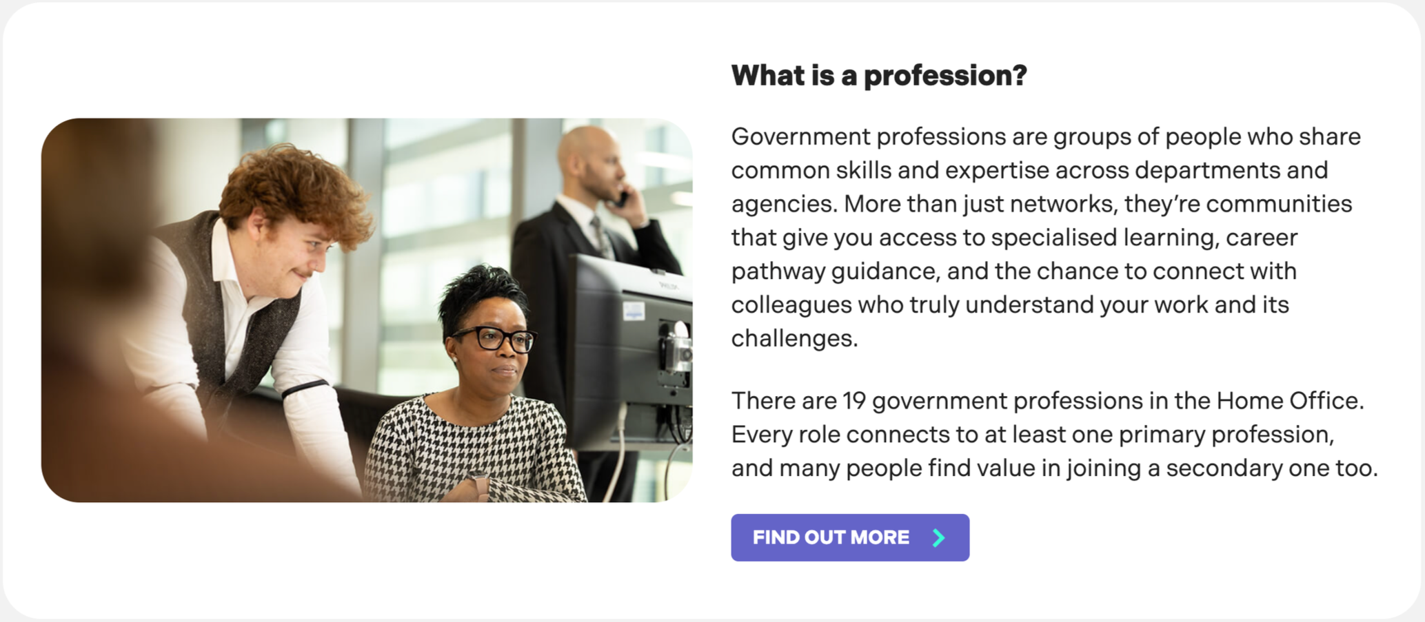 When working on the Home Office’s employer brand, I shaped their voice to be warm, plain speaking and confident. The kind that instils trust and addresses one person, rather than an assumed collective.